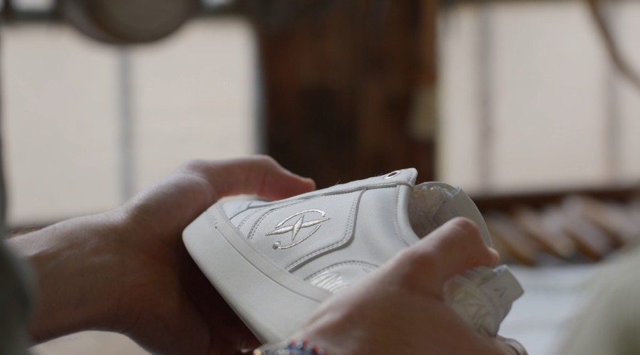 Sur chaque paire, un artisan brode un paysage naturel et tisse un animal sauvage en danger. Ces espèces sont choisies pour leur beauté fragile et soutenues par notre fonds de dotation Ross’Wild.